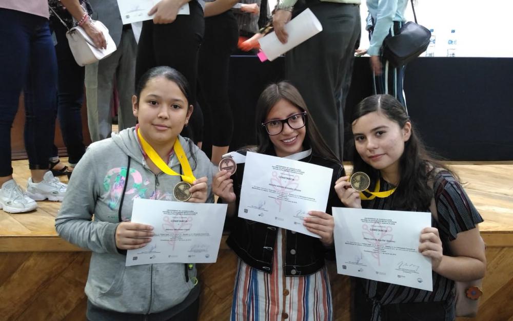 La Escuela Preparatoria Número 11 obtuvo tres medallas, dos primeros lugares en la categoría Hipatia con Mónica Martínez López y Diana Leticia Aguilar Jiménez y un tercer lugar en la categoría Atenea con Alondra Arhemí González Orozco.